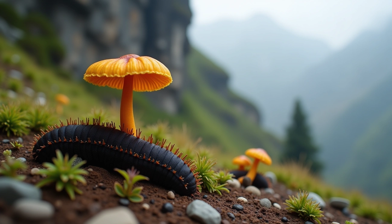 Originaire des hauts plateaux himalayens, le cordyceps possède un cycle de vie fascinant qui le distingue radicalement de tous les autres champignons médicinaux. Ce parasite fongique a développé une stratégie de survie exceptionnelle qui lui permet de se nourrir d’insectes, créant ainsi une symbiose mortelle mais fascinante entre règne animal et règne fongique.